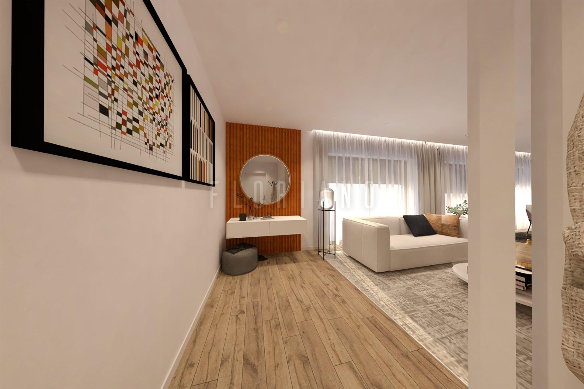 • Pavimento flutuante de carvalho AC5 (8 mm);