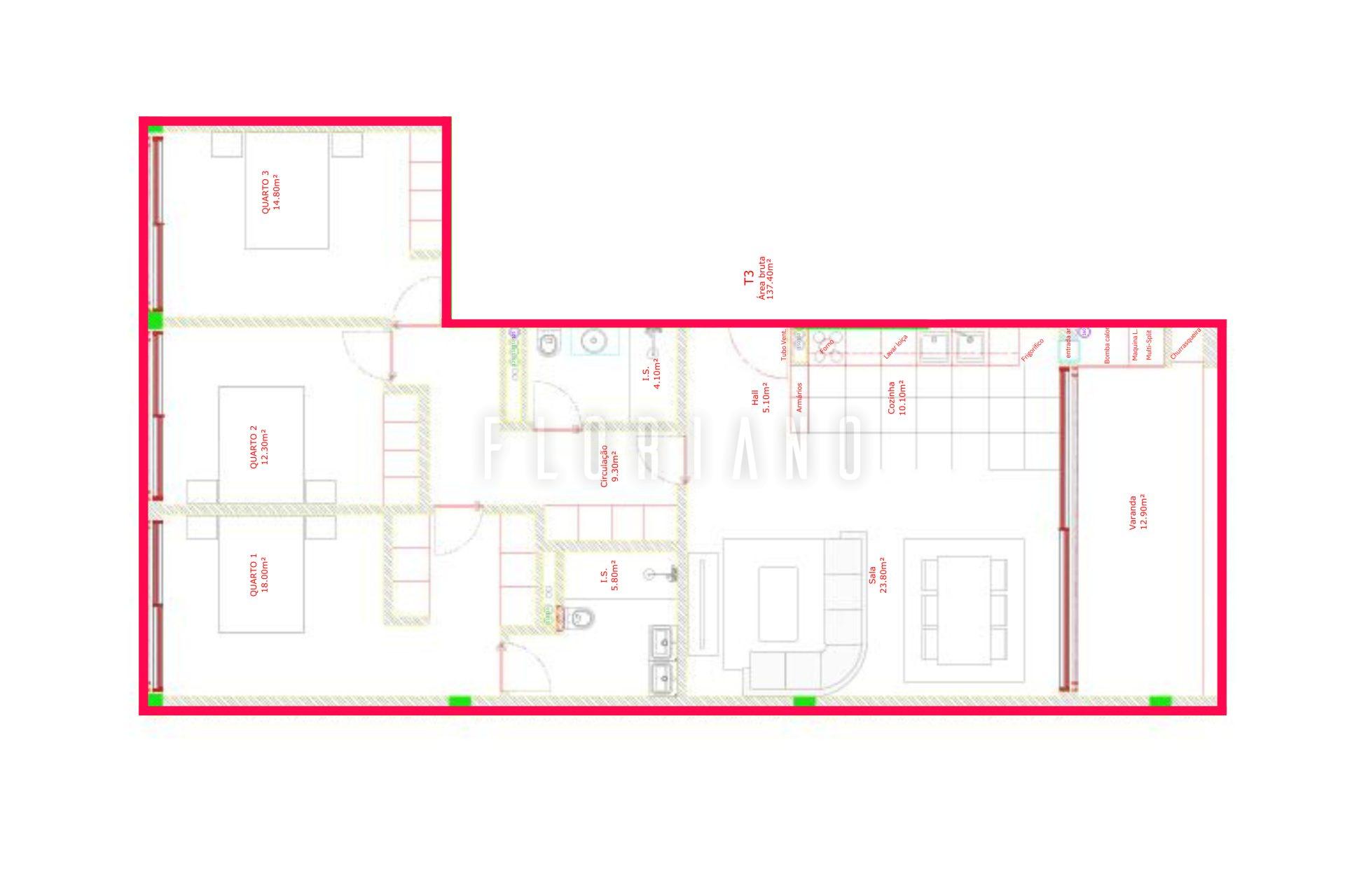 - 3 quartos sendo 1 deles suite;